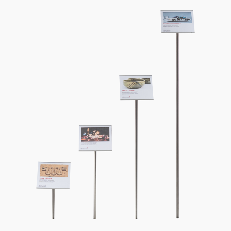 Chaque version conserve l'esthétique raffinée, la qualité muséale et le design discret qui ont fait de Pinnacle une solution de confiance dans les principaux musées et galeries du monde entier. De plus, toutes les variantes sont entièrement personnalisables, avec des tailles d'étiquettes, des hauteurs et des finitions de couleur RAL thermolaquées sur mesure, afin de garantir une intégration parfaite dans n'importe quel espace d'exposition.