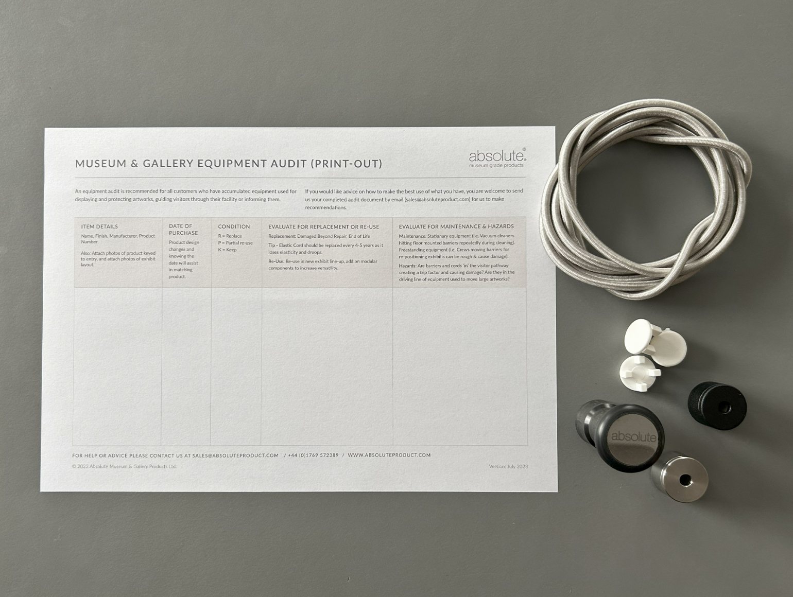 Nous recommandons un audit des équipements à tous les clients qui ont accumulé du matériel utilisé pour exposer et protéger les œuvres d'art, comme des systèmes d'accrochage d'œuvres d'art et des barrières de protection (poteaux), ainsi que du matériel utilisé pour guider les visiteurs dans leur installation ou les informer, comme des stands d'information. et les systèmes d'étiquetage.